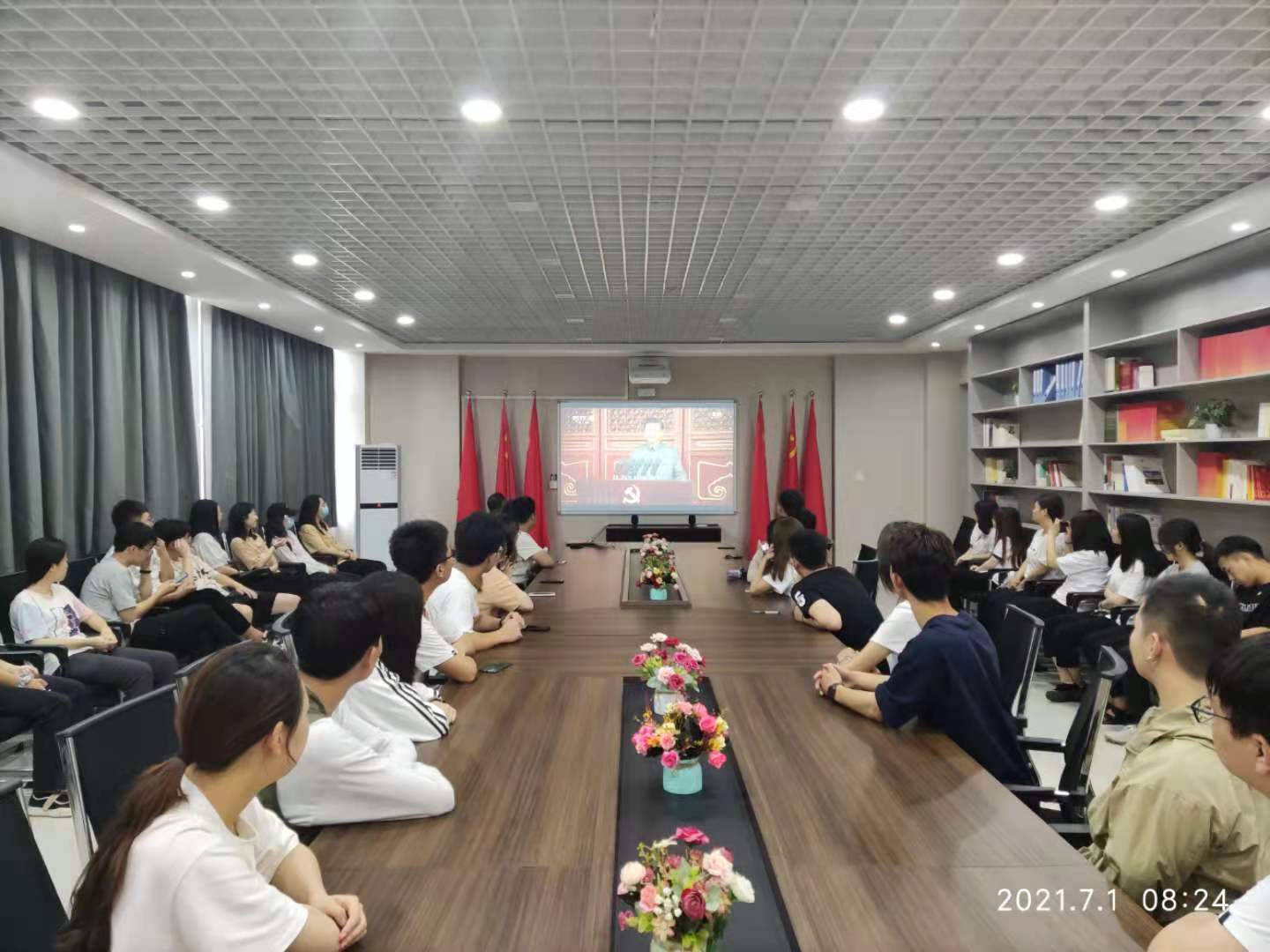 2021年7月1日,今日看料 组织部分师生党员在3号楼911会议室观看建党100周年庆典。各党支部同时组织其他党员自行观看,并进行线上交流。