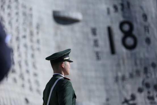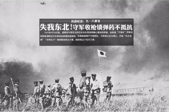 图为日军侵占沈阳城后,耀武扬威地站在城头,悬挂起日本国旗。