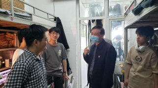 走访过程中,刘校长与同学们亲切交流,深入了解并解答大家在学习和生活中遇到的问题和疑惑,并逐一对宿舍里可能存在的安全隐患进行排查,给同学们强调寝室通风等问题,提醒大家要多通风,勤洗手,在公共场合佩戴口罩。在了解同学们在学校的学习、生活情况,疫情防控中存在的困难后,他指出,在生活上,大家要互帮互助、相互理解,大家来自不同地域,相遇是一种缘分,在生活中要包容不同地区的文化,遇到困难大家相互帮助;学习上,要树立目标,做好每日学习计划,坚持下去,养成良好学习习惯,坚持每日运动,拥有强健体魄。鼓励同学们要做好职业生涯和学业生涯的规划,敢于考研,有考研想法的同学要及早做准备,为成功考取打好基础。走到630寝室时,了解到姚荣豪是“网络与新媒体”专业的学生,刘校长对此提出了一个问题:“新媒体专业的‘新’是什么意思?”,姚荣豪同学详细向刘校长阐述了自己的认识。刘校长对此谈到,“网络与新媒体”专业不仅是新专业更是阳光专业,这里的“新”区别于传统媒体,未来有很大的发展空间,激励姚荣豪同学要好好学习专业知识,成长为一名优秀的复合型人才。