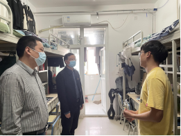 刘校长表示通过对学生宿舍的走访,发现同学们心理状态和学习状态良好,宿舍卫生和安全状况总体良好。他嘱咐同学们离开宿舍一定要断电、断水、锁门,以实验室安全标准对待宿舍安全,提高宿舍安全意识,防患于未然;保持宿舍卫生,做好寝室文化建设,抓好宿舍的学习风气,传播正能量。他最后强调,疫情防控形势依然严峻复杂,同学们一定要按照防疫要求做好防护工作,配合学院领导、老师落实好上级部门的防疫要求和精神。