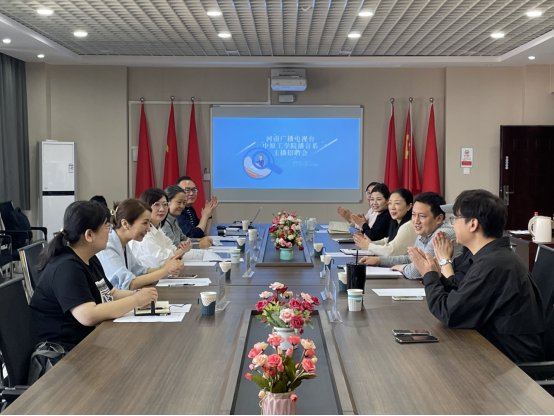 党委书记崔涛、院长杨静、副院长李建波、蔡爱芳、播音系主任王欢、副主任宋立参加了招聘会前的校媒交流座谈会。