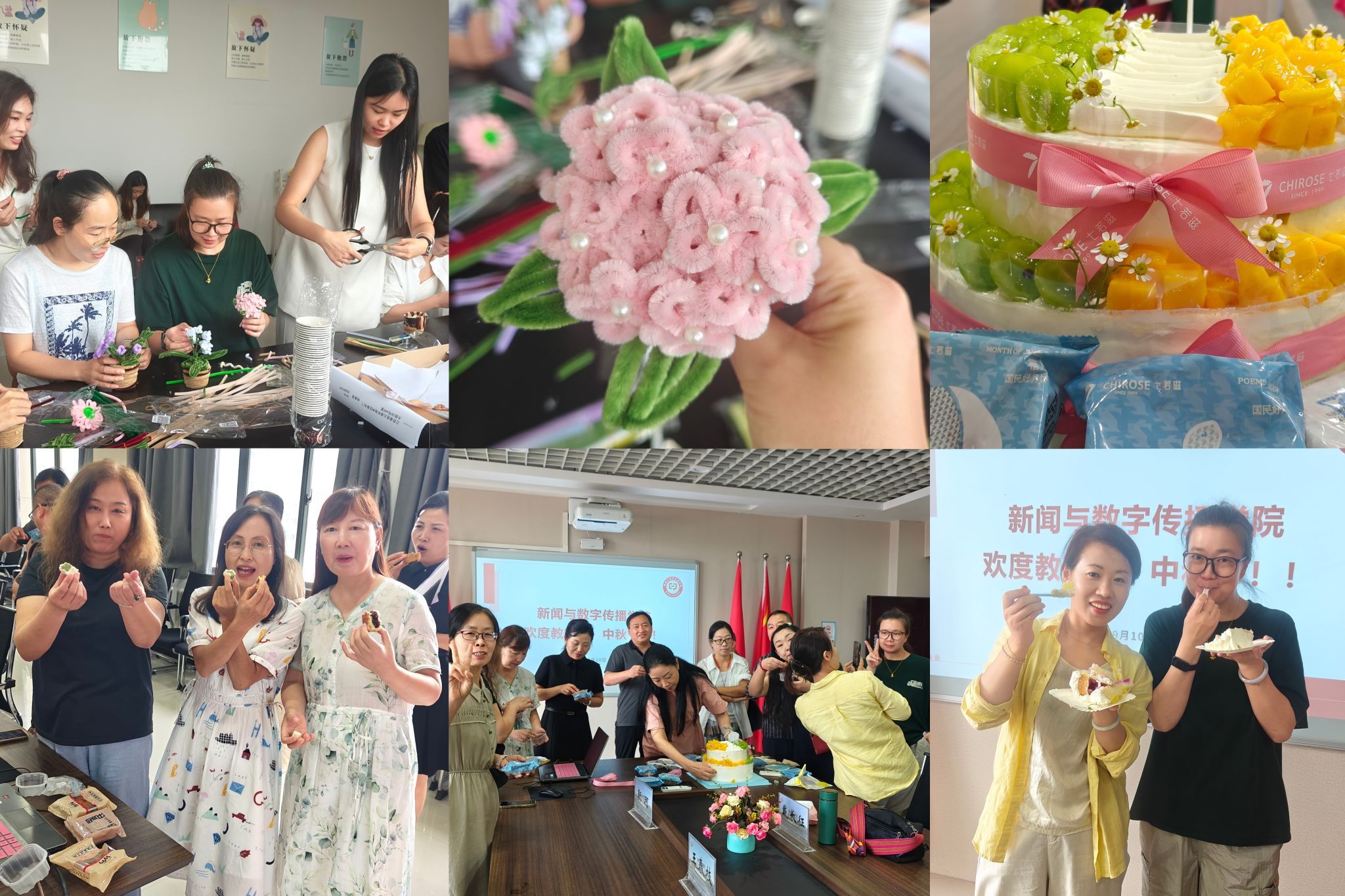 分工会于9月10日成功举办了一场别开生面的师生联谊活动。老师和同学们一起制作创意绒花,分享蛋糕,共享月饼。此次活动不仅增进了师生之间的情感交流,也营造了温馨和谐的校园氛围。