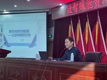 岳德军以《黄河文化时代价值挖掘—以治河传统技艺为例》为题,从黄河中下游的水灾治理这个故事说起,深刻分析了黄河文化的现实价值,并以治河传统技艺为例,探讨了如何挖掘保护传承弘扬黄河文化。他表示,黄河文化是中华民族的根,要加大基础研究力度,完善遗产名录与保护制度,征集复制文物,整理典籍档案,他特别强调要充分利用数字技术实施抢救性保护与传承,让黄河文化在新时代焕发出新的生机与活力。