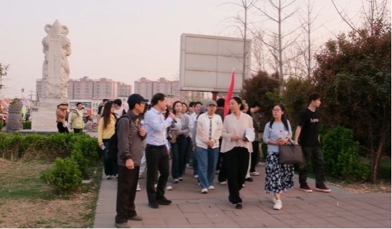 活动中,师生一行先后前往南裹头广场、花园口将军像、将军坝、引黄闸及镇河铁犀等处。黄河研究专家岳德军结合地理遗迹与文献资料,梳理了黄河沿岸的人文脉络与工程壮举,令在场师生深切感受到黄河文化的厚重底蕴。在南裹头,结合黄河生态治理和保护工程,讲解了黄河治理的科技智慧;在花园口,通过讲述抗战时期“花园口决堤”事件,剖析了黄河承载的民族记忆与精神力量。同学们通过影像记录、现场采访、文化速写等方式,多角度挖掘黄河故事。2023级张同学感慨:“站在黄河边听讲解,那些书本上的文字瞬间鲜活起来,更深刻理解了何为‘一部黄河史,半部中国史’。”