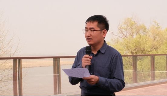 岳德军首先致辞,他回顾了黄河的重要历史事件,从秦国掘堤水淹大梁城到黄河流域综合治理规划,深入解读了黄河文化的历史意义与时代价值,鼓励学生运用专业知识和数字技术记录黄河变化。王东东对活动的顺利举办表示祝贺,介绍了当地在黄河战略推动下、依托黄河文化打造多个文旅项目,有力促进了区域发展。杨静表示,此次活动是学院深化‘新文科’育人理念的重要实践,也是推动黄河文化创新传播的再出发,鼓励师生肩负传承创新黄河文化的使命,运用新技术讲好黄河故事,并对同学们提出扎根人民、践行“四力”、守正创新展现文化魅力、知行合一提升专业素养的要求和期待。随后,刘念将象征着责任与使命的旗帜授予学生代表,主持人宣布活动正式启动。