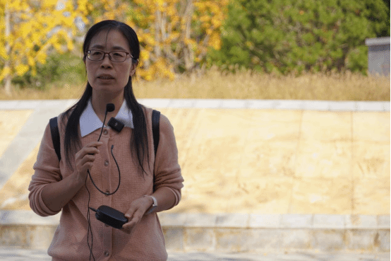 研学首站,师生们来到毛泽东视察黄河纪念碑前,“要把黄河的事情办好”几个鎏金大字在阳光下熠熠生辉,诉说着 1952 年伟人视察黄河时的嘱托与期许。蔡爱芳在纪念碑前指出,“善淤、善决、善徙”是黄河的特点,开封地处黄河“悬河”河段,这里的每一寸土地都镌刻着治黄史诗。她鼓励同学们以此次研学为契机,将镜头对准治河遗迹,让尘封的治黄故事在数字时代焕发新生。