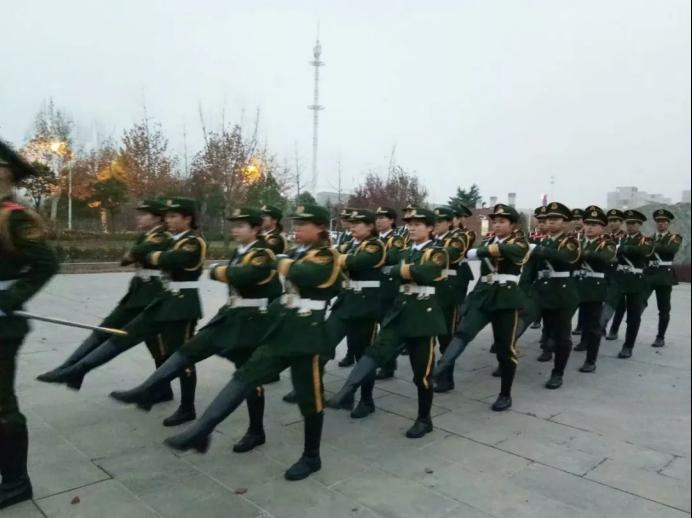 接下来就是升旗仪式了,此次升旗仪式分四项举行:首先是第一项,由国旗护卫队出旗,随着一声嘹亮的口令,国旗护卫队的同学们英姿飒爽,迈着矫健的步伐步入广场。