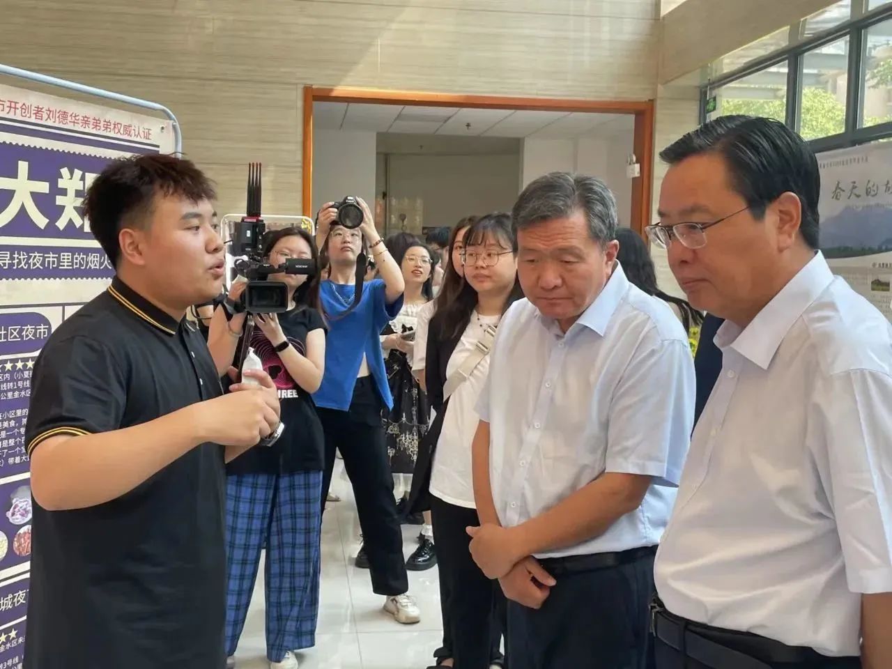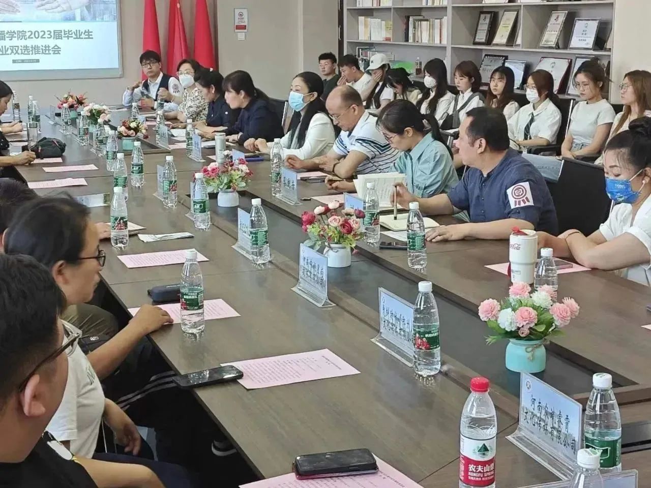 展演结束后,新闻与传播学院就业双选会在3号组团楼B904会议室举行。刘国存、新闻与传播学院班子成员、系主任及学生代表与河南广播电视台、顶端新闻、大河网·豫视频、中原网、新密市融媒体中心、河南豫情大数据有限公司等媒体、企业嘉宾进行了座谈交流。