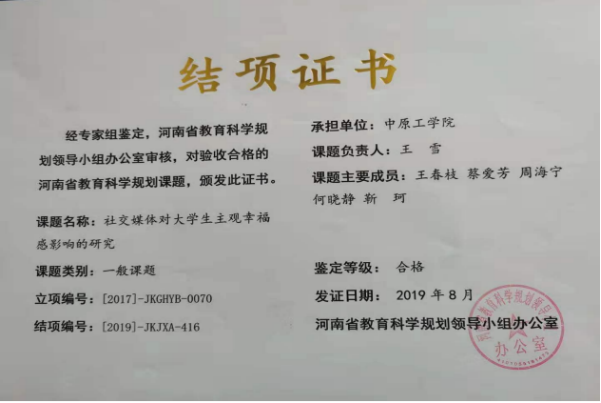 5.河南省教育科学规划课题结项证书